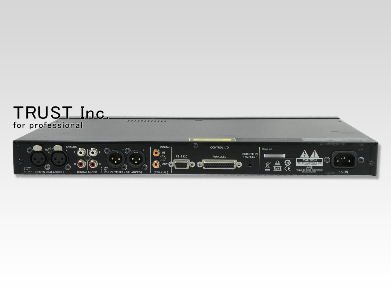XLR/RCAアナログ及びCOAXIALデジタル入出力に加え、RS-232C/PARALLEL端子を装備