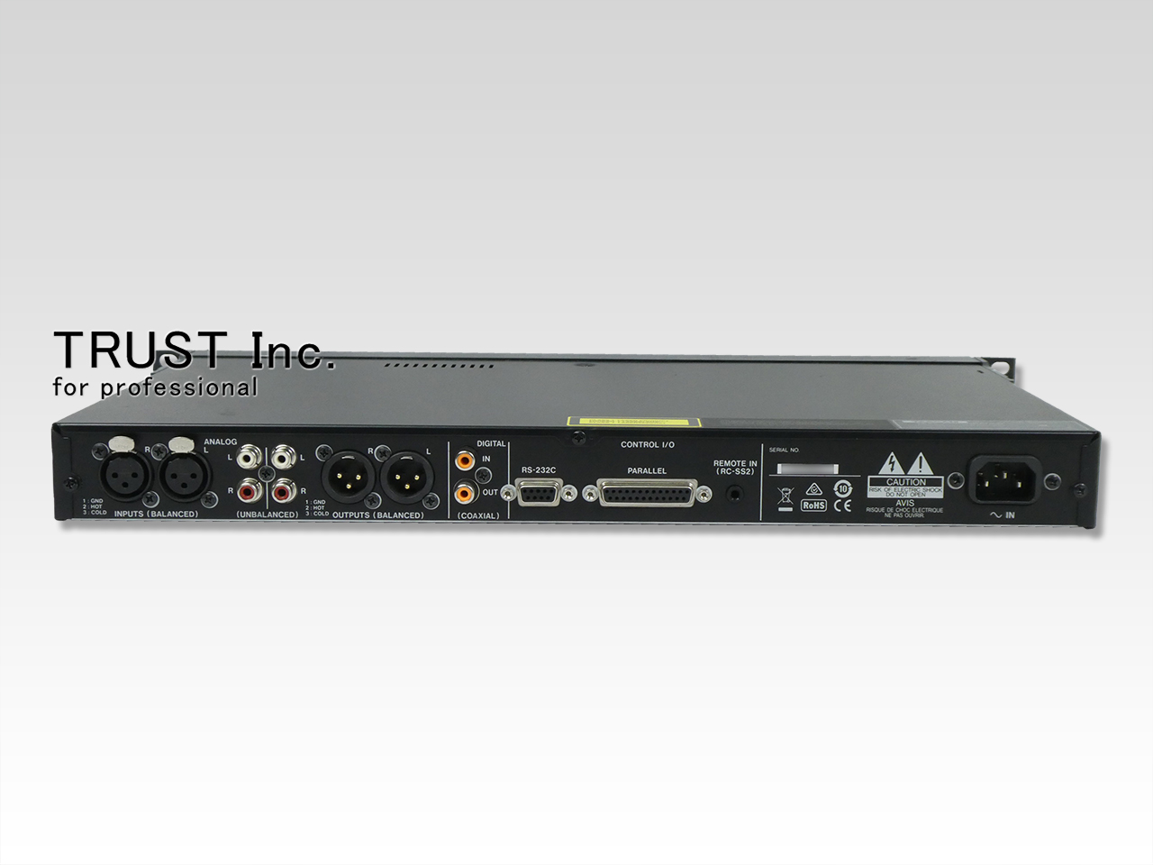 XLR/RCAアナログ及びCOAXIALデジタル入出力に加え、RS-232C/PARALLEL端子を装備